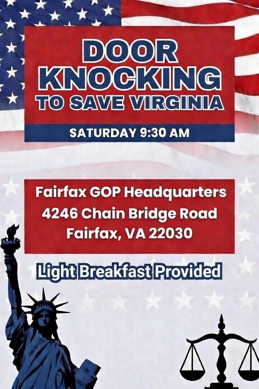 The Redistricting Amendment MUST be defeated! We need door knockers to help inform Fairfax County voters about the redistricting amendment and why voters need to GO VOTE NO! WHEN: Saturday, […]