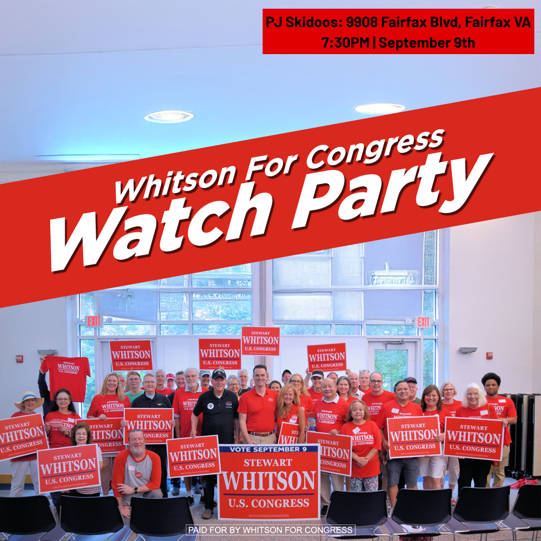 Sep 9 7:30 PM - 10:00 PM Stewart Whitson for Congress, Watch Party PJ Skidoos 9808 Fairfax Blvd, Fairfax Event Details Get Directions
